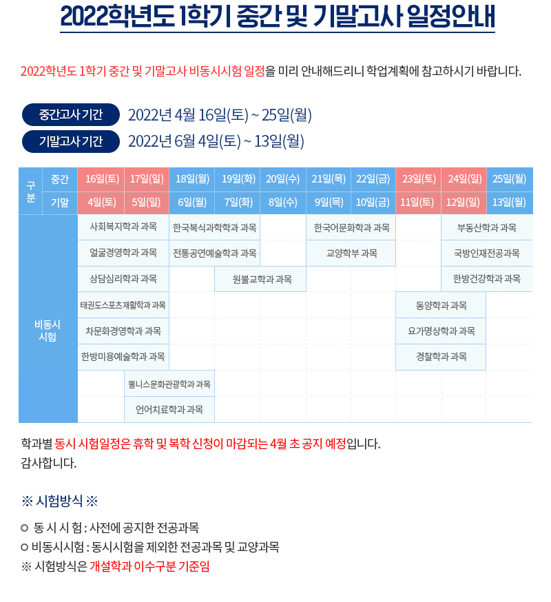 [시험] 22-1학기 중간 및 기말고사 비동시 시험 일정안내