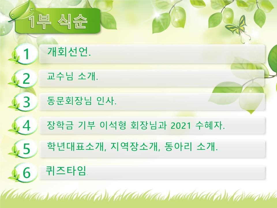 안녕하세요. 학우님들~ 2022학년도 동양학과 춘계 MT가 온라인으로 개최됩니다. 춘계MT의 일정은 다음과 같습니다. 주제: 2022 WDU 동양학과 MT 시간: 2022년 3월 26일 13:00~16:00 서울 *일정 1부 : 신입 학우님들을 위해 각 지역별 지역장님들의소개와 동양학과 공식 동아리들의 각 동아리회장님의동아리 소개가 있을 예정입니다. 1부 끝나고 행운권추첨도 있습니다~^^ 2부: 본교 졸업생으로 유투버 15학번 염승엽선배님의 "세상에 나쁜 팔자는 없다" 주제로 특강 있습니다. 참가를 희망하시는 학우님: 아래에 안내되는 ZOOM 링크를 접속하시면 됩니다. ***** 신입학우님들의 많은 참석 바랍니다.