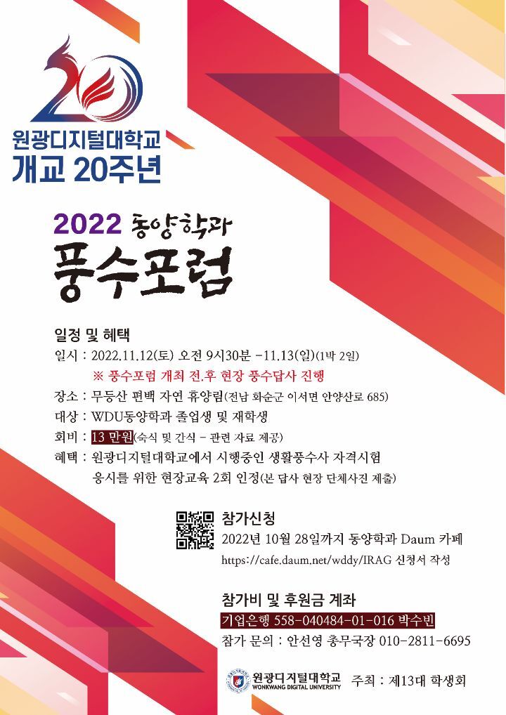 | 제목 | 개교 20주년 동양학과 '풍수포럼' | 등록일 | 2022-10-12 | 조회수 | 448 |