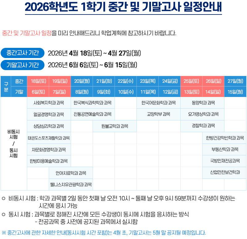[시험] 26-1학기 중간 및 기말고사 일정안내