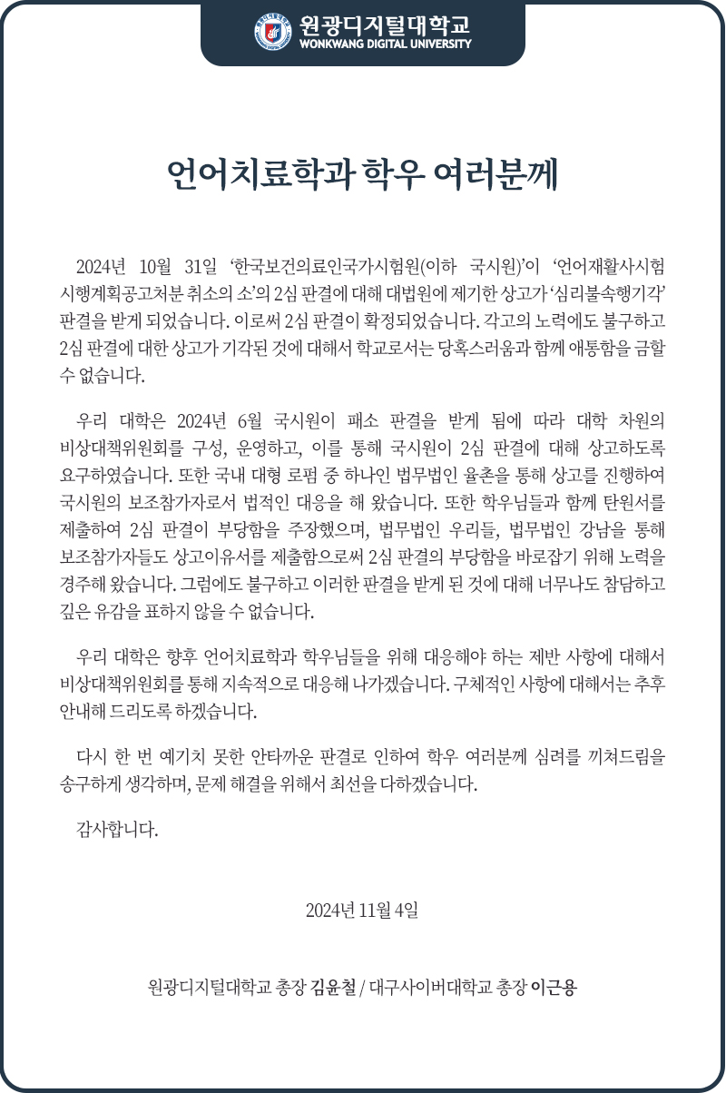 [총장 담화문] 언어치료학과 학우 여러분께