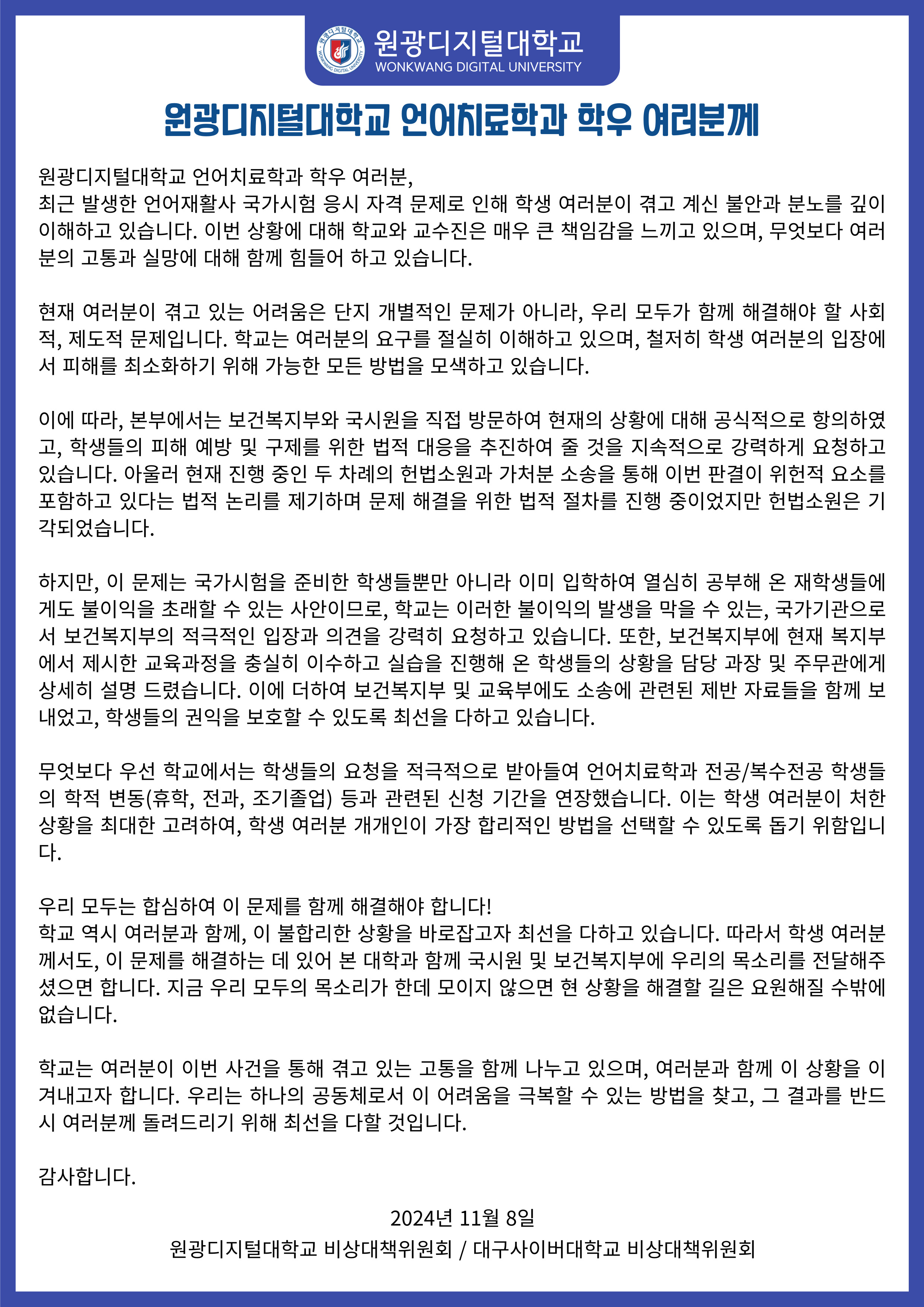 [공지] 2024학년도 2학기 언어치료학과 학적변동 예외 신청 사전 안내