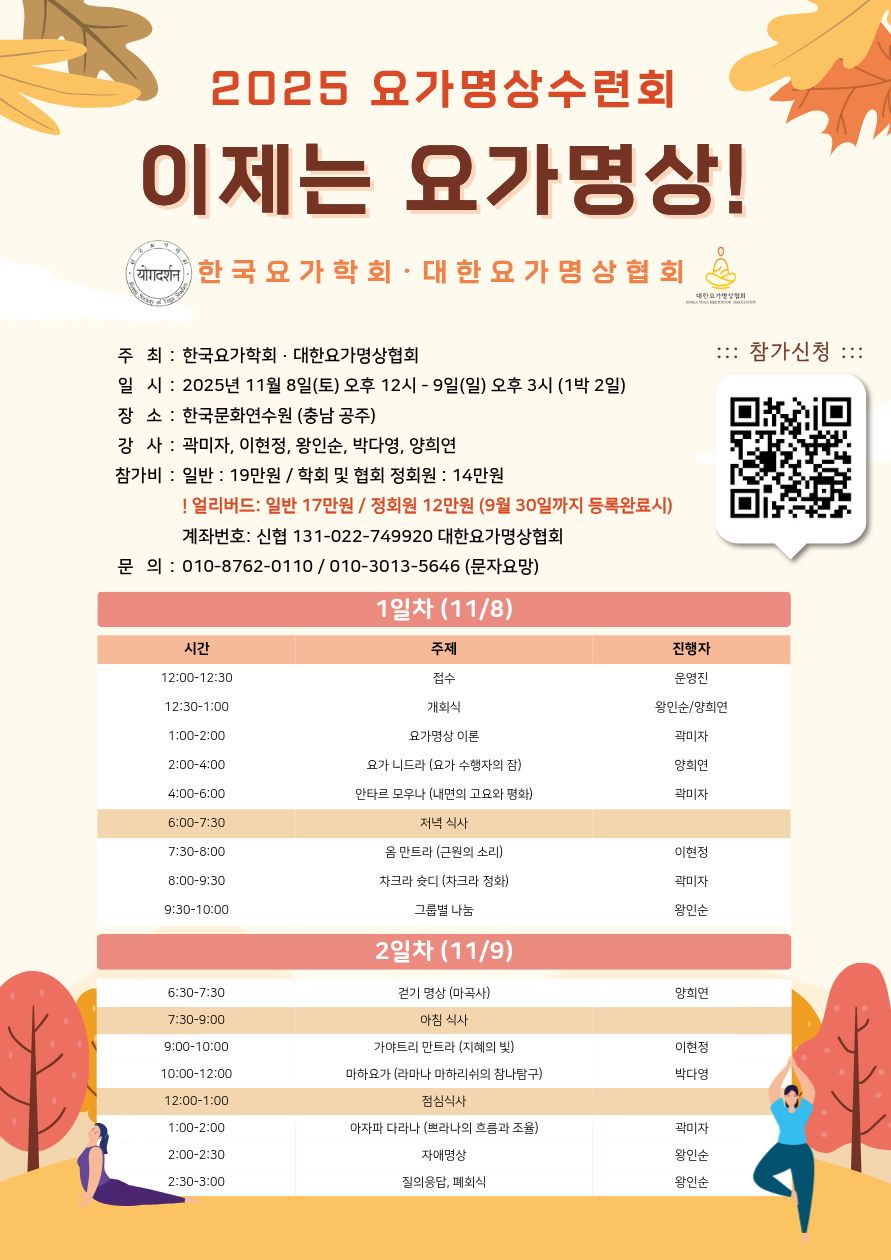 한국요가학회 요가명상수련회 안내