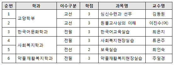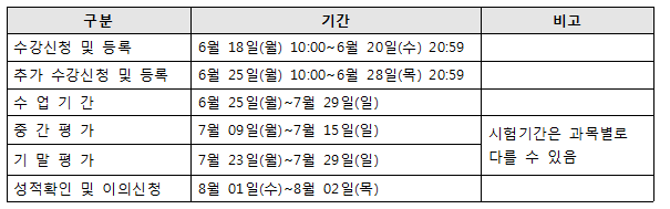 여름방학기간 중 아래와 같이 계절학기를 운영합니다. 개설과목을 참고하시어