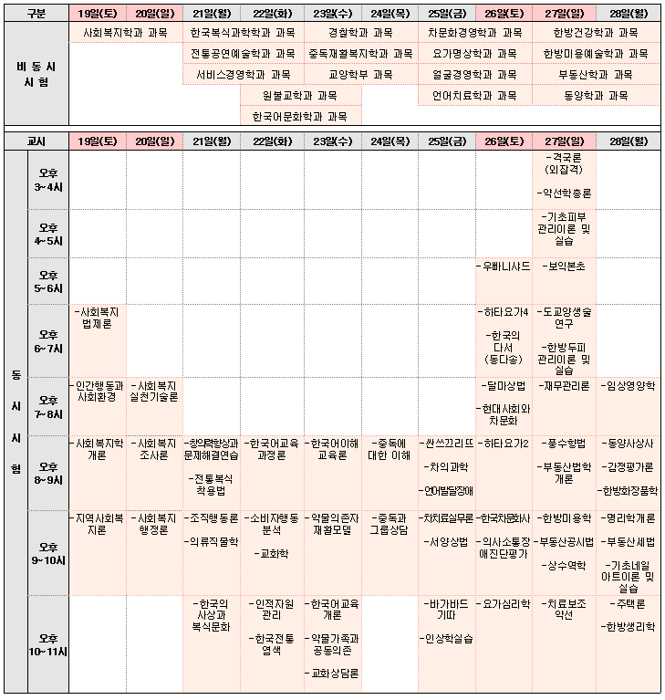 다. 과목별 시험시간 및 시험관련 상세내용은 과목공지게시판에서 꼭 확인하시기 바랍니다.
