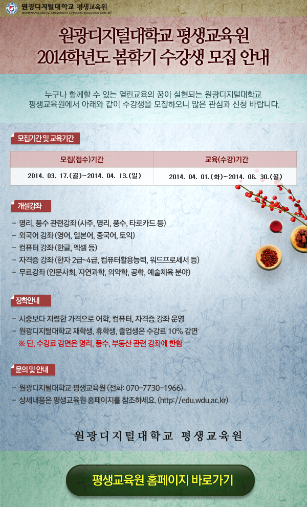 평생교육원 봄학기 수강생 모집 안내