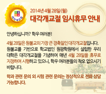 | 제목 | 대각개교절(大覺開敎節) 휴무 안내 | ||||