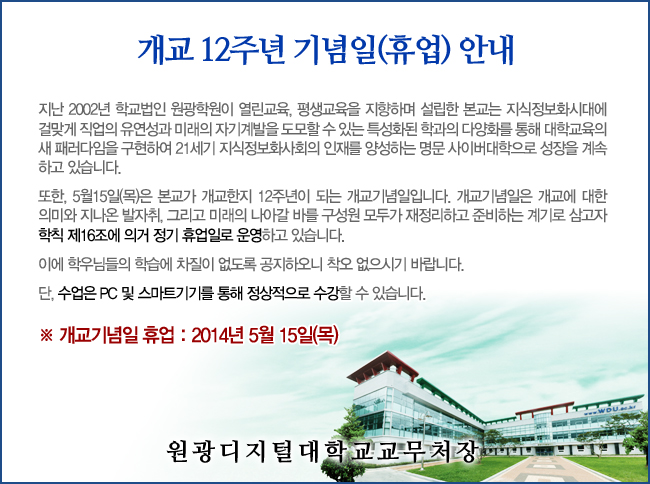 개교 12주년 기념일(휴업) 안내