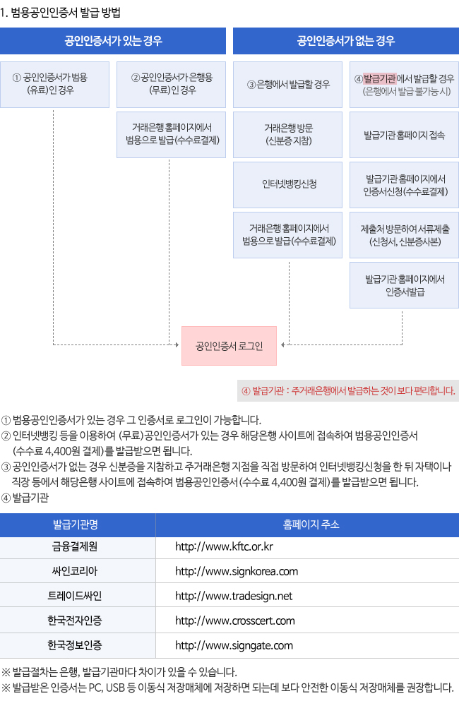 1. 범용공인인증서 발급 방법