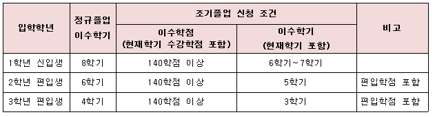 가. 조기졸업을 신청한 학우님은 아래의 졸업요건을 모두 충족해야 하므로 학점관리에 만전을 기해