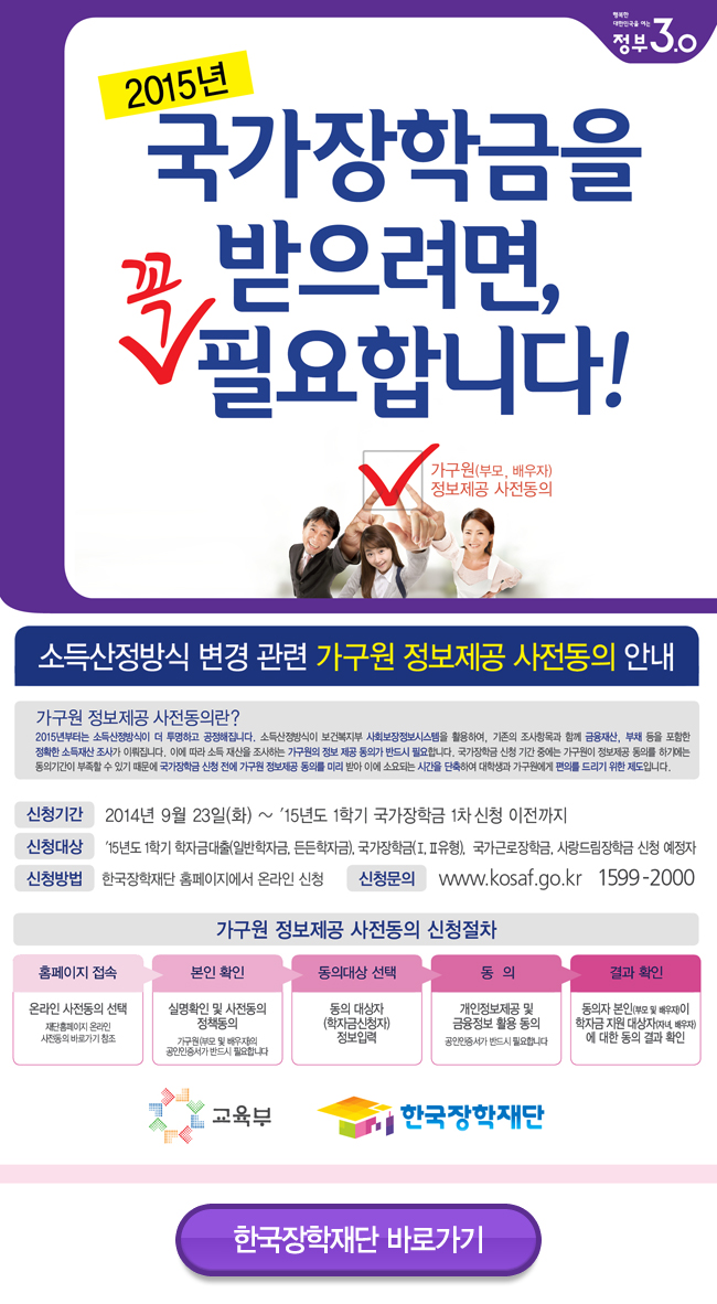 국가장학금 소득산정방식 변경 관련 가구원 정보제공 사전동의 안내