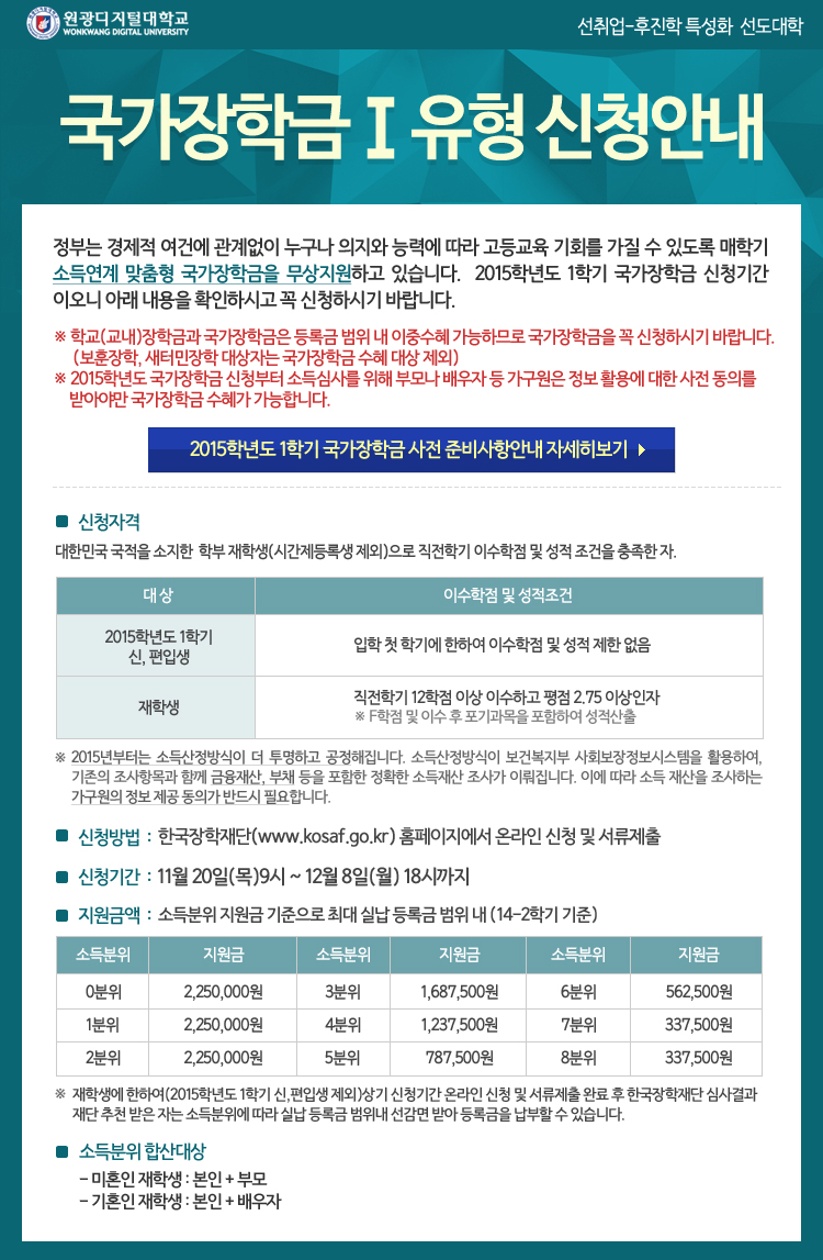 15-1학기 국가장학금 Ⅰ유형 신청안내