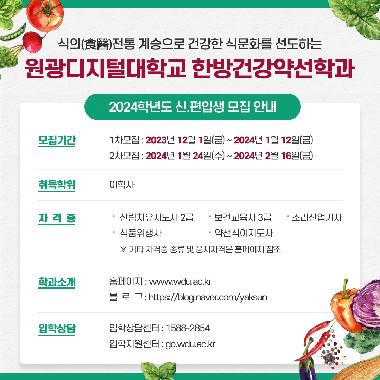 웰빙사회 구현을 위한 자연건강 전문인재 양성 - 원광디지털대학교 대학원